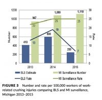 Michigan State University researchers Joanna Kica, MPA and Ken Rosenman, MD used hospital records and workers’ compensation data to identify 3,137 work-related crushing injuries in Michigan from 2013 through 2015. This compares to the federal government’s official estimate of only 1,260 incidents for the same period.